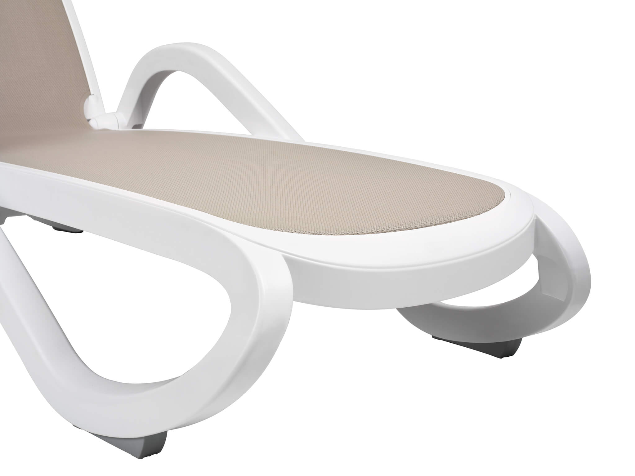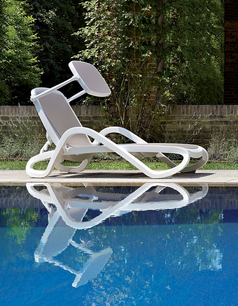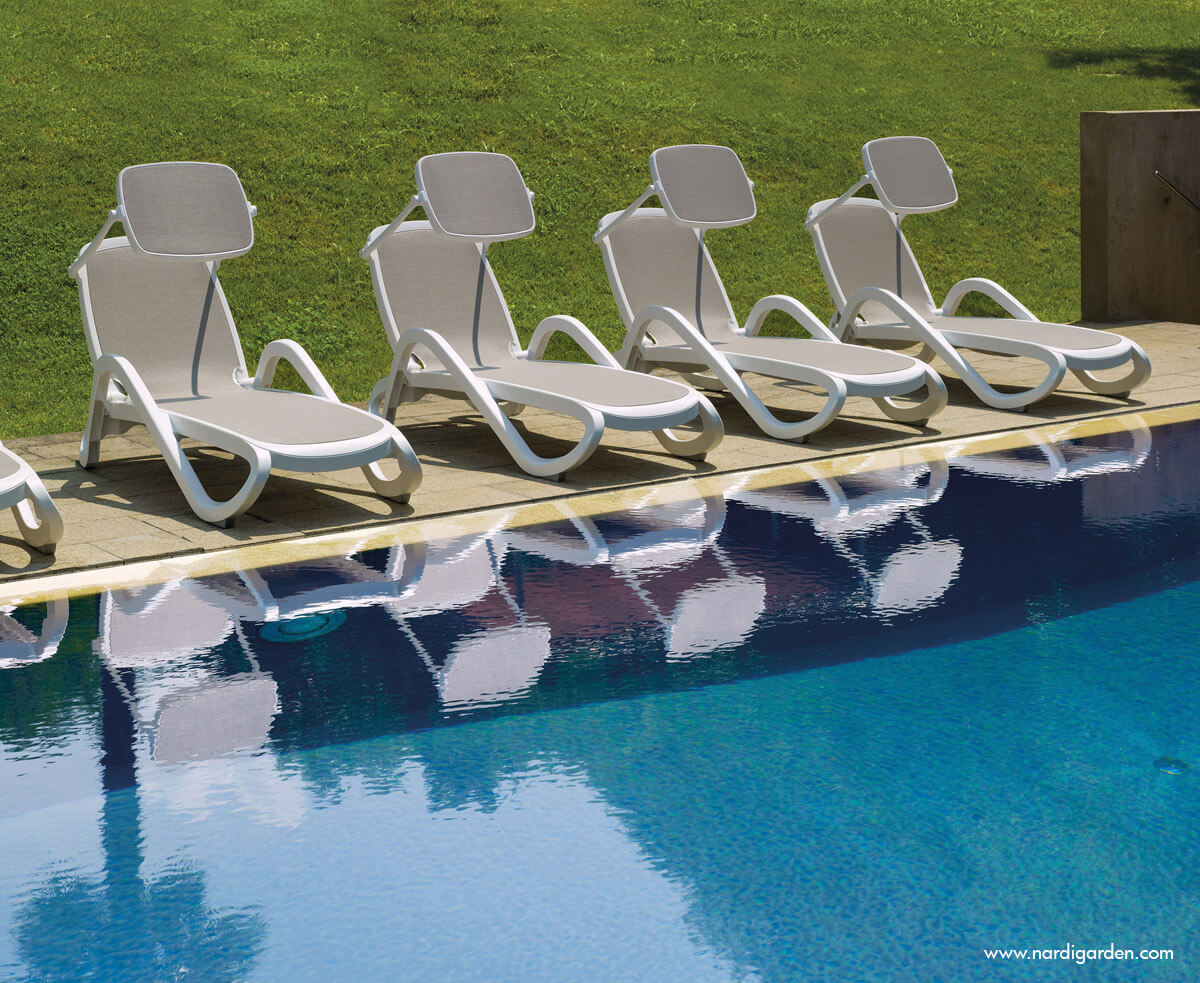Tumbona con brazos caracterizada por su estructura tubular, hecha a base de resina de fibra de vidrio y polipropileno e interior de tejido sintético transpirante. Respaldo regulable en cuatro posiciones y disponible en diferentes combinaciones de color entre estructura y tejido. Ideal para los que prefieren una asoleadora con brazos integrados para relajarse más tranquilamente. Apilable para facilitar transporte y almacenamiento. Disponible en una amplia gama de colores. Malla termo protectora recambiable.