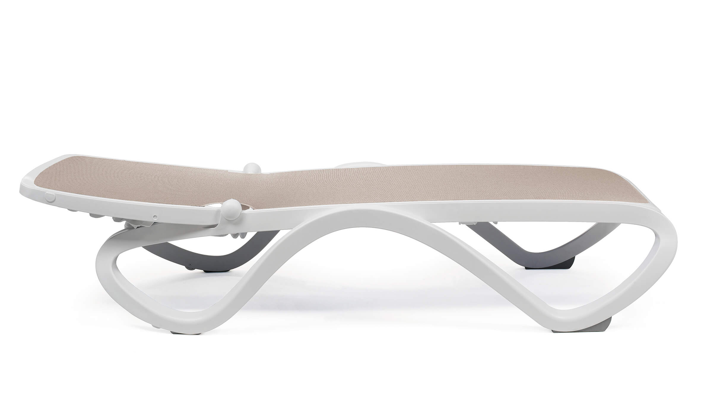 Tumbona sin brazos caracterizada por una estructura tubular de resina en fibra de vidrio y polipropileno e interior de tejido sintético transpirante. Respaldo regulable en cuatro posiciones y disponible en diferentes combinaciones de color entre estructura y tejido. La asoleadora Omega tiene una estructura aerodinámica y ligera. Apilable para facilitar transporte y almacenamiento. De diseño simple y estilizado. Disponible en una amplia gama de colores. Malla termo protectora recambiable.
