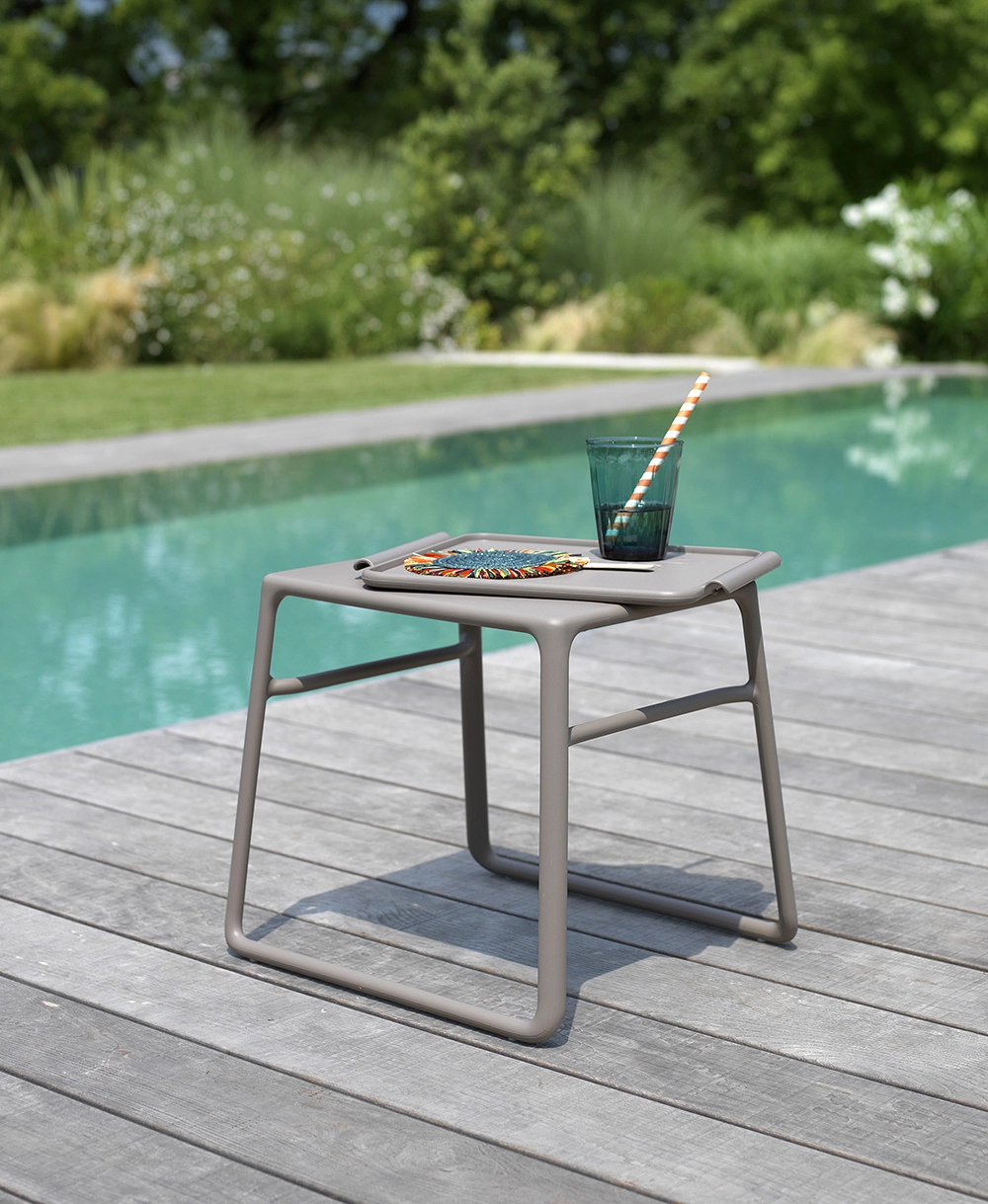 La mesa Pop es un modelo ligero de esquinas suaves y curvas que acompaña perfectamente a tus asoleadoras para que no te falte nada mientras disfrutas un momento relajante en la playa o piscina. Útil, minimalista y multifunción, Pop esta hecha a base de resina de fibra de vidrio y polipropileno que presenta líneas rigurosas pero al mismo tiempo suavizadas por las formas redondeadas y sin esquinas de cada elemento que la compone. Tiene una bandeja inferior removible en donde puedes colocar tus aparatos electrónicos u otros objetos personales para protegerlos de la luz directa del sol.