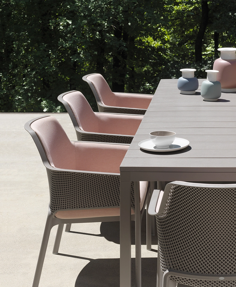 La Mesa Extensible RIO destaca personalidad y robustez . tiene un sistema patentado de alargamiento que permite desplazar la estructura manteniendo las patas siempre en el extremo de la mesa, y eliminando de esta manera la desagradable incomodidad de las dimensiones de los soportes.