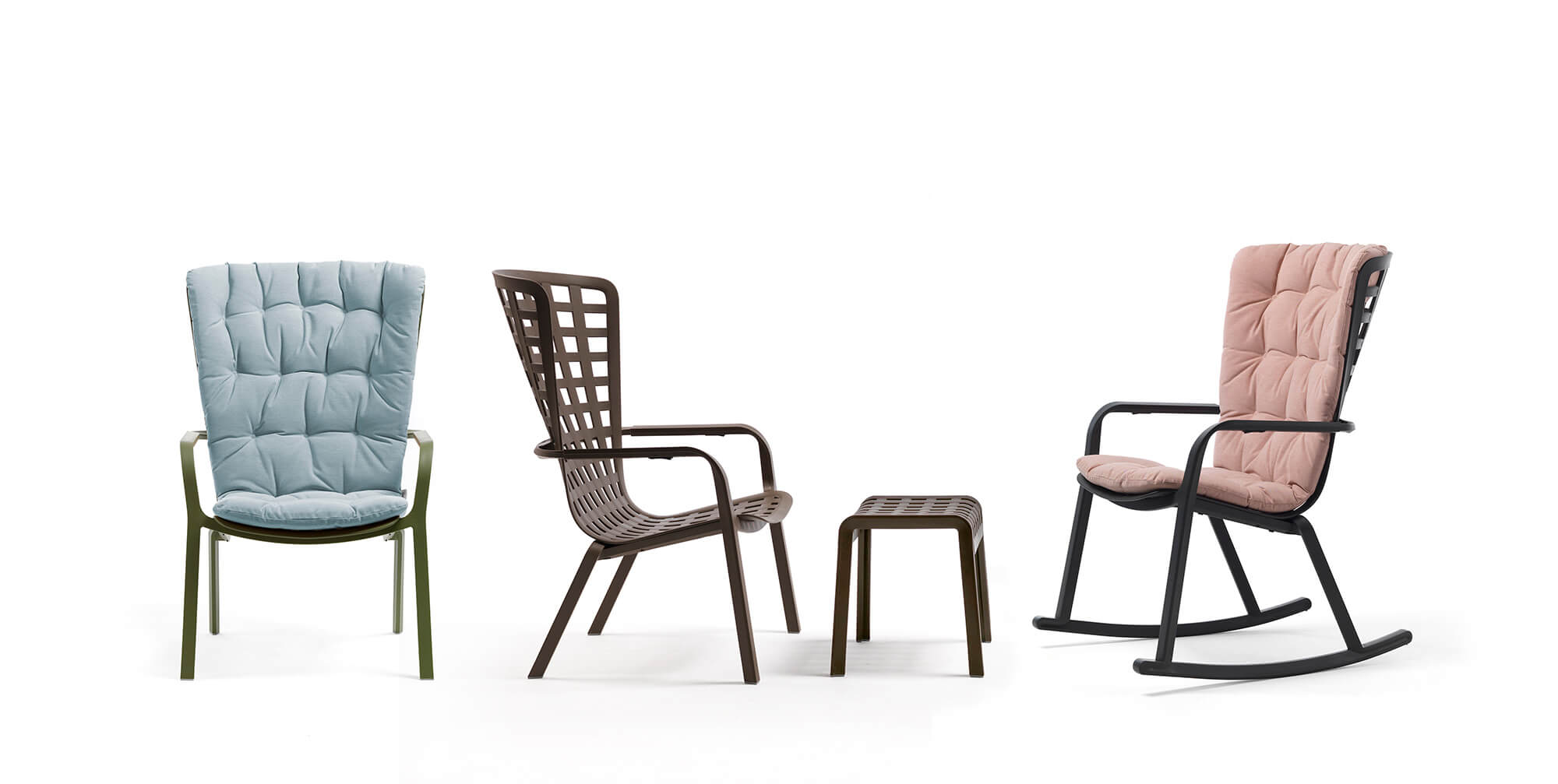 Poggio es un reposapiés o taburete de exterior. Presentado como reposapiés funcional de la nueva colección de sillones Folio. Poggio es un refinado complemento caracterizado por una estructura perforada y decorada con un patrón de cuadros que sabe otorgar un toque de estilo poco convencional a los ambientes exteriores.
