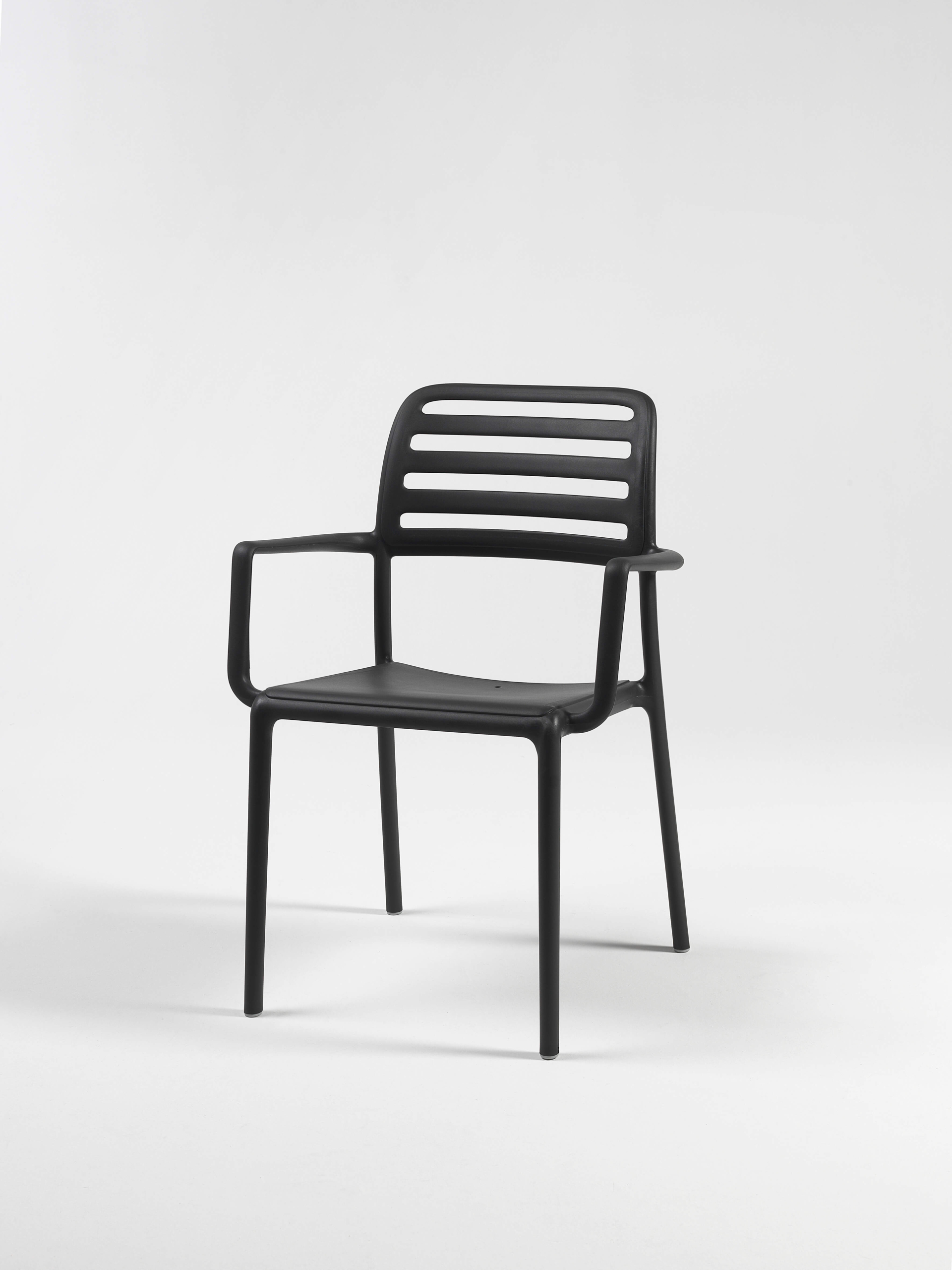Una silla con diseño minimalista y mucho estilo, con líneas en su espaldar que la hacen ligera, práctica y cómoda. Combina una amplia gama de colores y gran resistencia para espacios más frecuentados. Desarrollado con materiales especial para soportar cualquier tipo de clima y temperatura exterior. Costa es una silla de exterior con brazos y respaldo de duelas hecho a base de resina de fibra de vidrio y polipropileno: un único tubular de resina, sin interrupciones, con perfiles y ángulos redondeados.